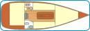 Obszerna kabina Twistera 780 mieści dwuosobową hundkoję, dwuosobową kabinę dziobową i dwie dwuosobowe koje w mesie. Funkcjonalna zabudowa zapewnia doskonałe warunki wypoczynku i miłą rodzinną atmosferę.